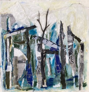 Collage met acryl en pastelkrijt op handgeschept Indiaas katoen